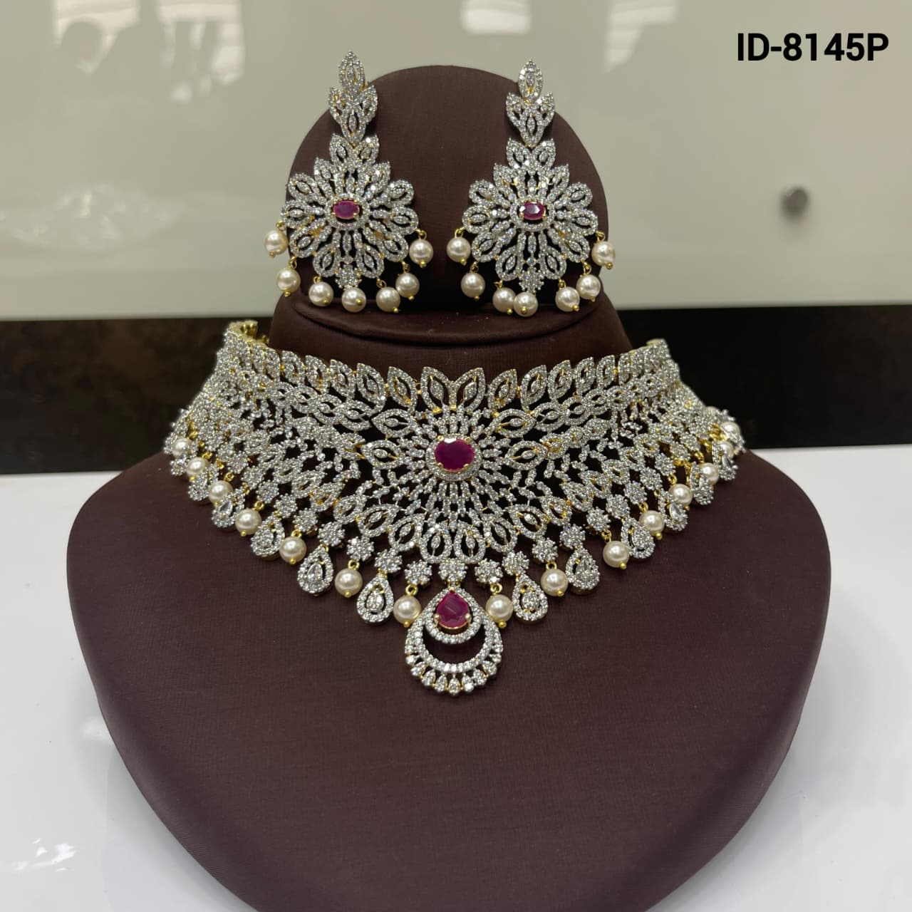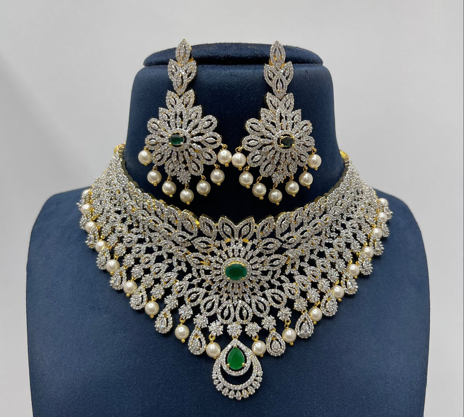 Material - Premium Quality Diamond look-alikePolish – Bright GoldBase Metal - Copper & Brass AlloyStone – Cubic zirconia stones & Pearl beads