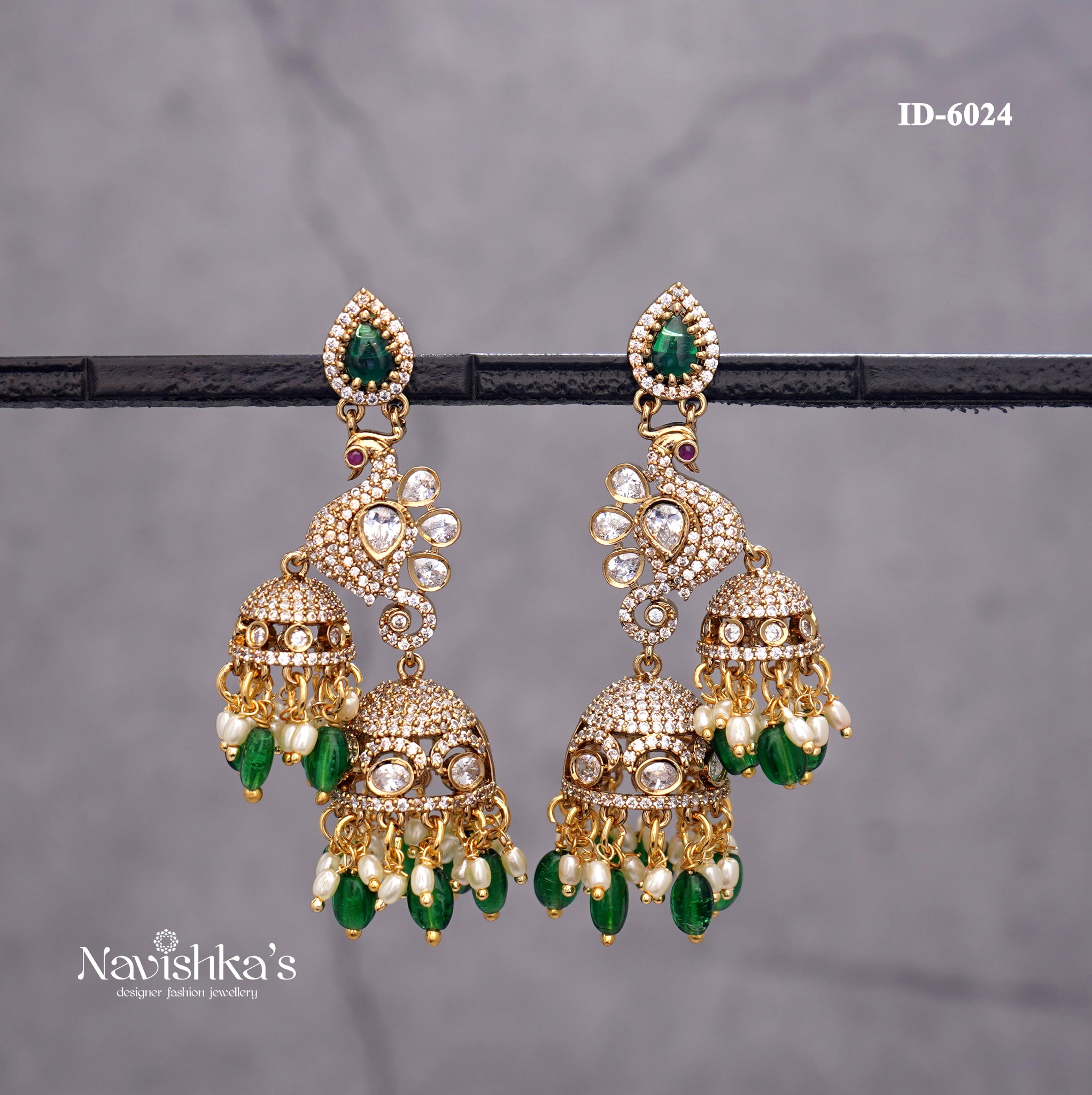 Material - Premium Quality Diamond look-alikePolish – Bright GoldBase Metal - Copper & Brass AlloyStone – Cubic zirconia stones & Pearl beads