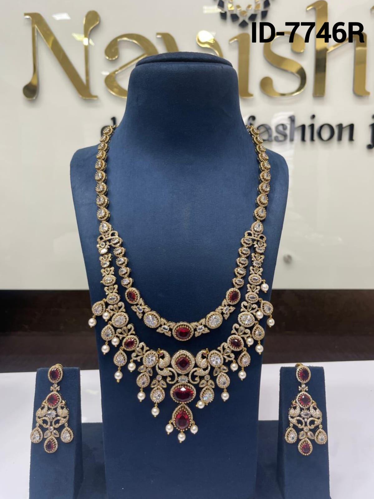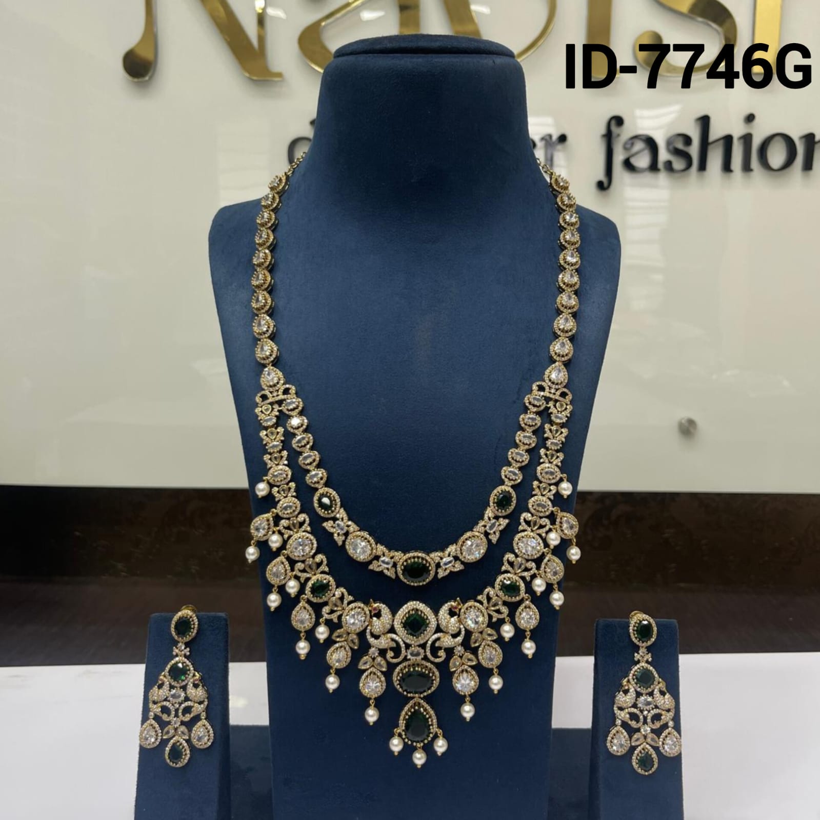 Material - Premium Quality Diamond look-alikePolish – Bright GoldBase Metal - Copper & Brass AlloyStone – Cubic zirconia stones & Pearl beads