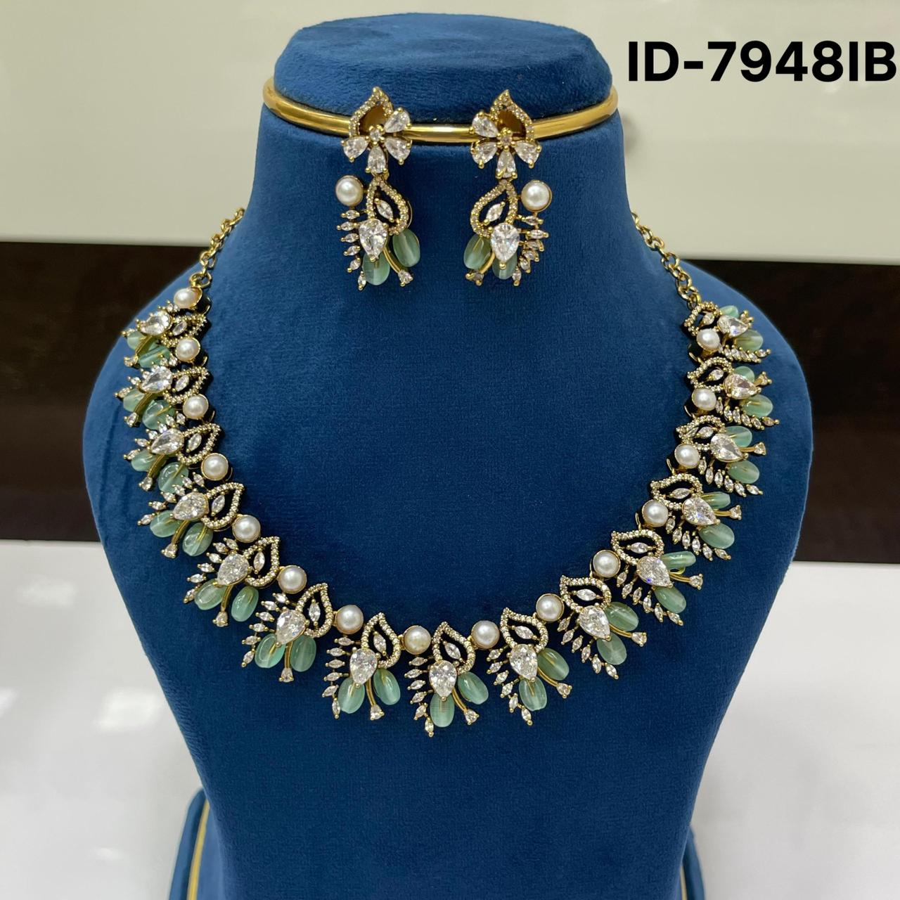 Material - Premium Quality Diamond look-alikePolish – Bright GoldBase Metal - Copper & Brass AlloyStone – Cubic zirconia stones & Pearl beads
